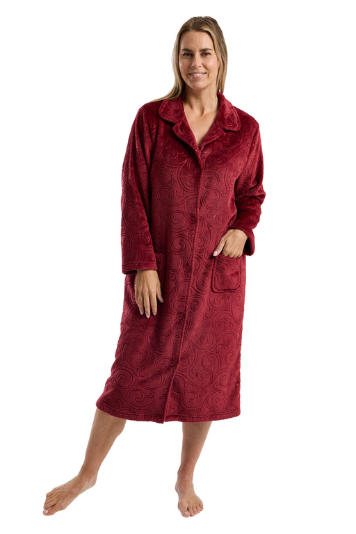 Luxury Swirl Print Embossed Button Front Dressing Gown