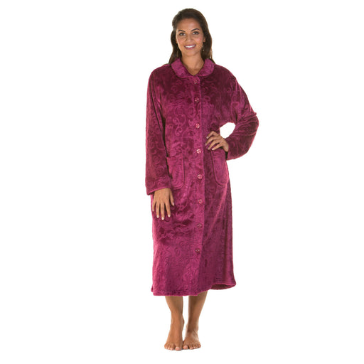 Luxury Fleece Embossed Effect Material Soft Touch Fleece Peter Pan Collar Full Button Front 2 Patch Pockets  Length Approx 47"  Colours Navy Deep ...