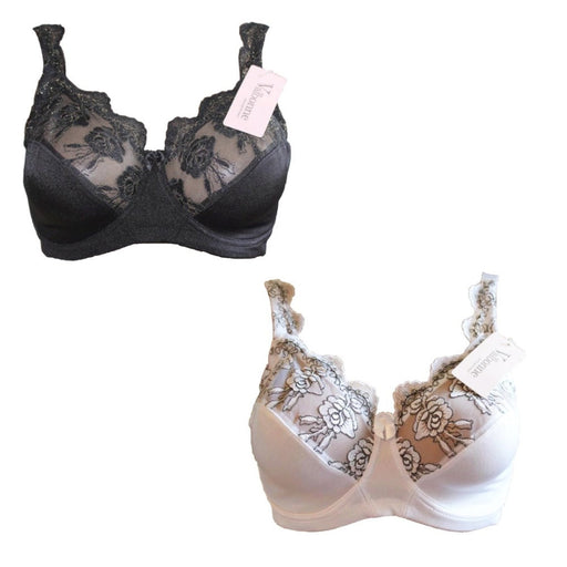 Very Pretty Firm Control Underwired Bra by Valbonne Non Padded Cup Deep Lace Trim with Gold Embroidery Wide Back with 3 Hook and Eye Fastening Wid...