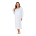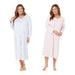 Indulge in luxurious comfort with a Soft Touch Micro-Fleece Fabric featuring a delicate floral print in Blue or Pink. Round neckline with a partial button-front and long sleeves provide a snug fit.
